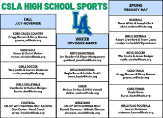 • If your student-athlete co-ops a sport at another school, please sign up for CSLA only and select those sports. It will link them to the co-op school for that sport only and CSLA for everything else.